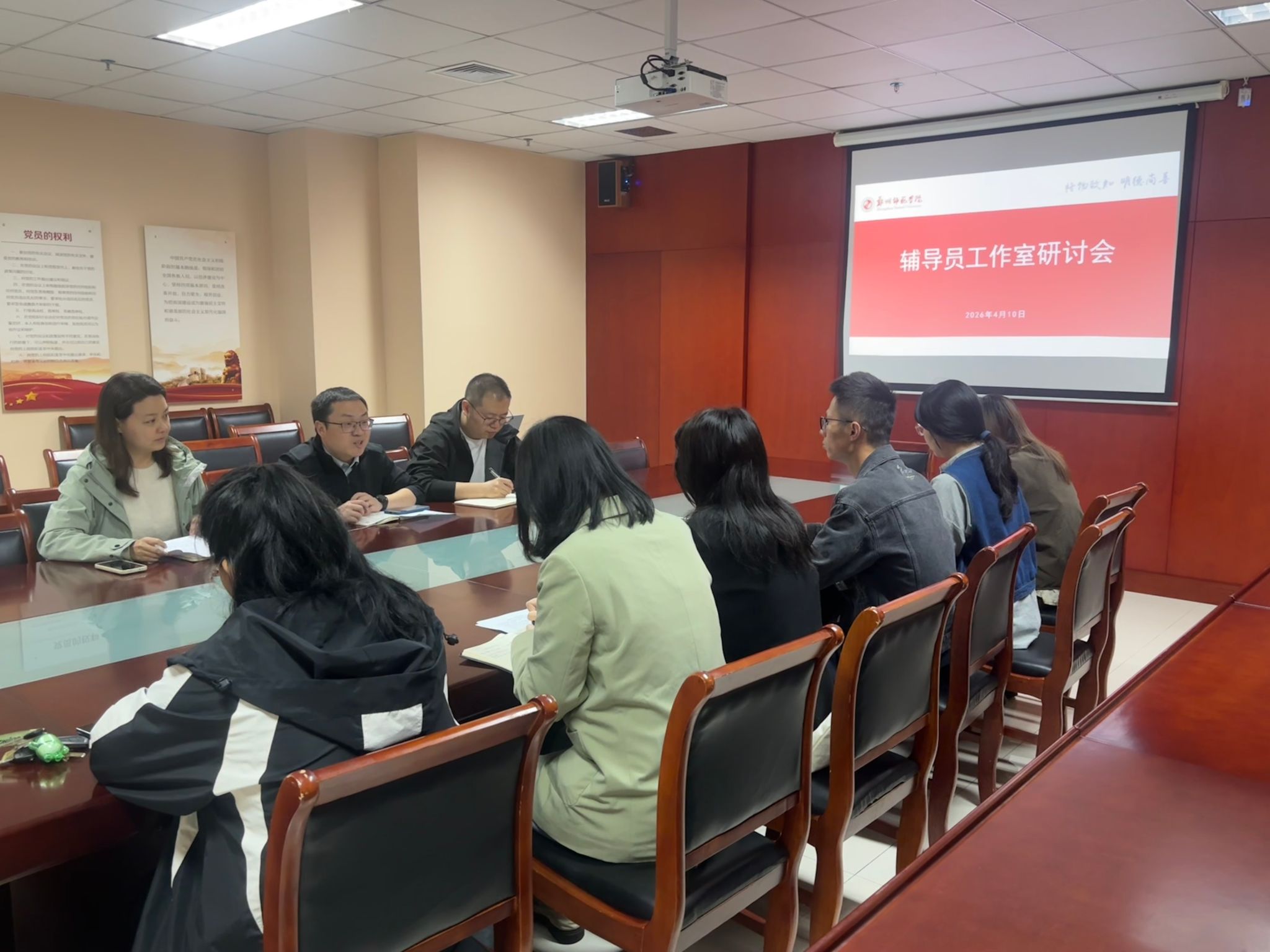 为深入推进辅导员队伍专业化、职业化建设,充分发挥辅导员工作室的示范引领和带动作用,我校于2026年4月10日在综合楼会议室召开辅导员工作室研讨会。学生处相关科室负责人、我校辅导员工作室代表参加本次研讨。