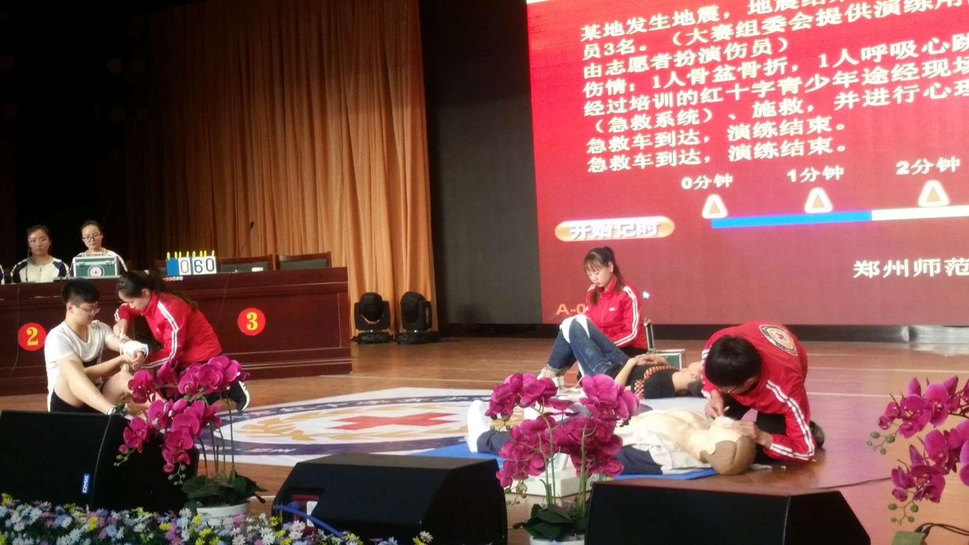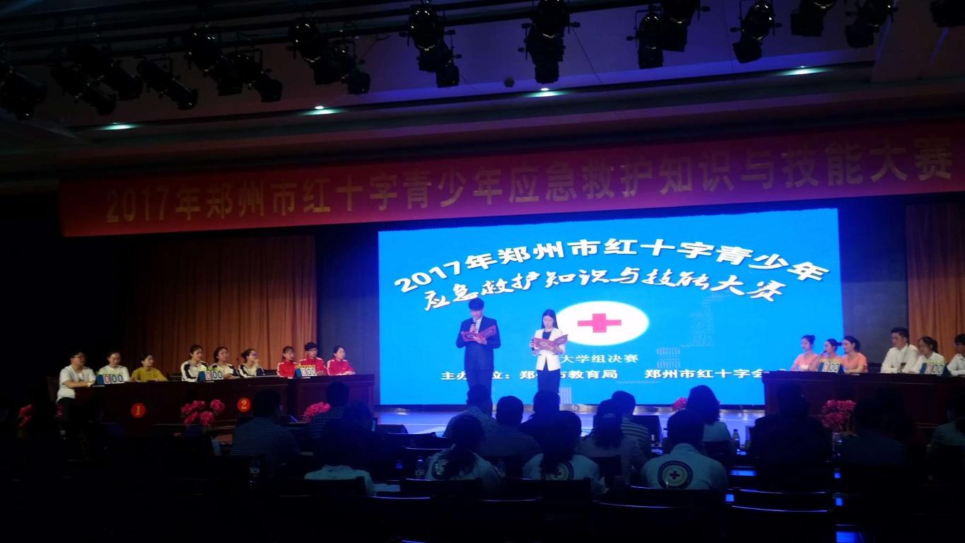 为扩大红十字运动基本知识和国际人道法的宣传,普及应急救护、造血干细胞、艾滋病预防和远离毒品等知识,进一步提高青年学生对生命与健康的认识和灾害逃生、自救互救技能,2017年4月23日郑州市教育局与市红十字会联合举办的“2017年郑州市红十字青少年应急救护知识与技能大赛”在郑州市十九中高中部体艺馆成功举办。
