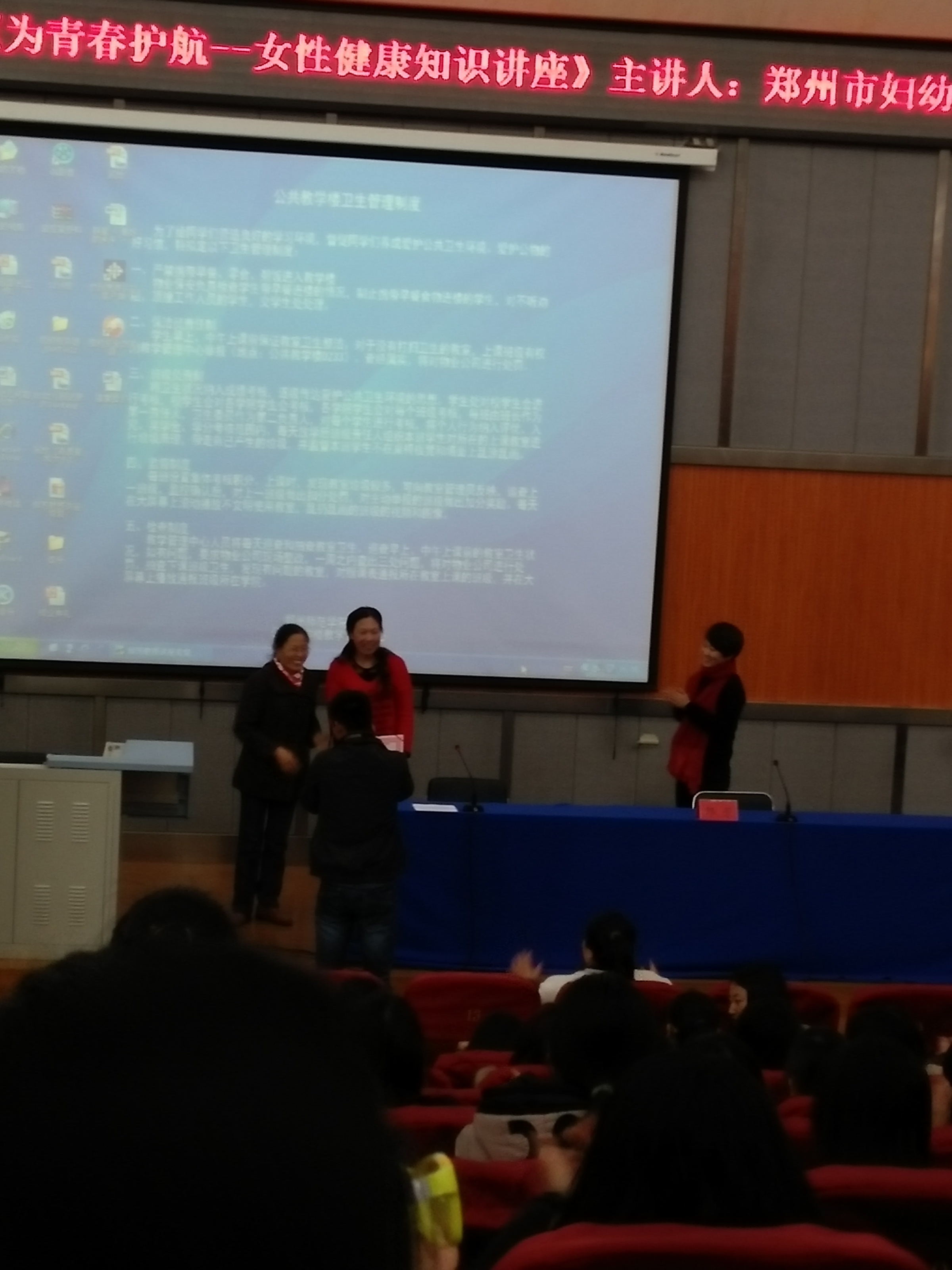 3月24日下午,郑州市妇幼保健院邹芳主任医师,在东校区公共教学楼A301为我校弘毅书院女生开展女性健康方面的知识讲座。