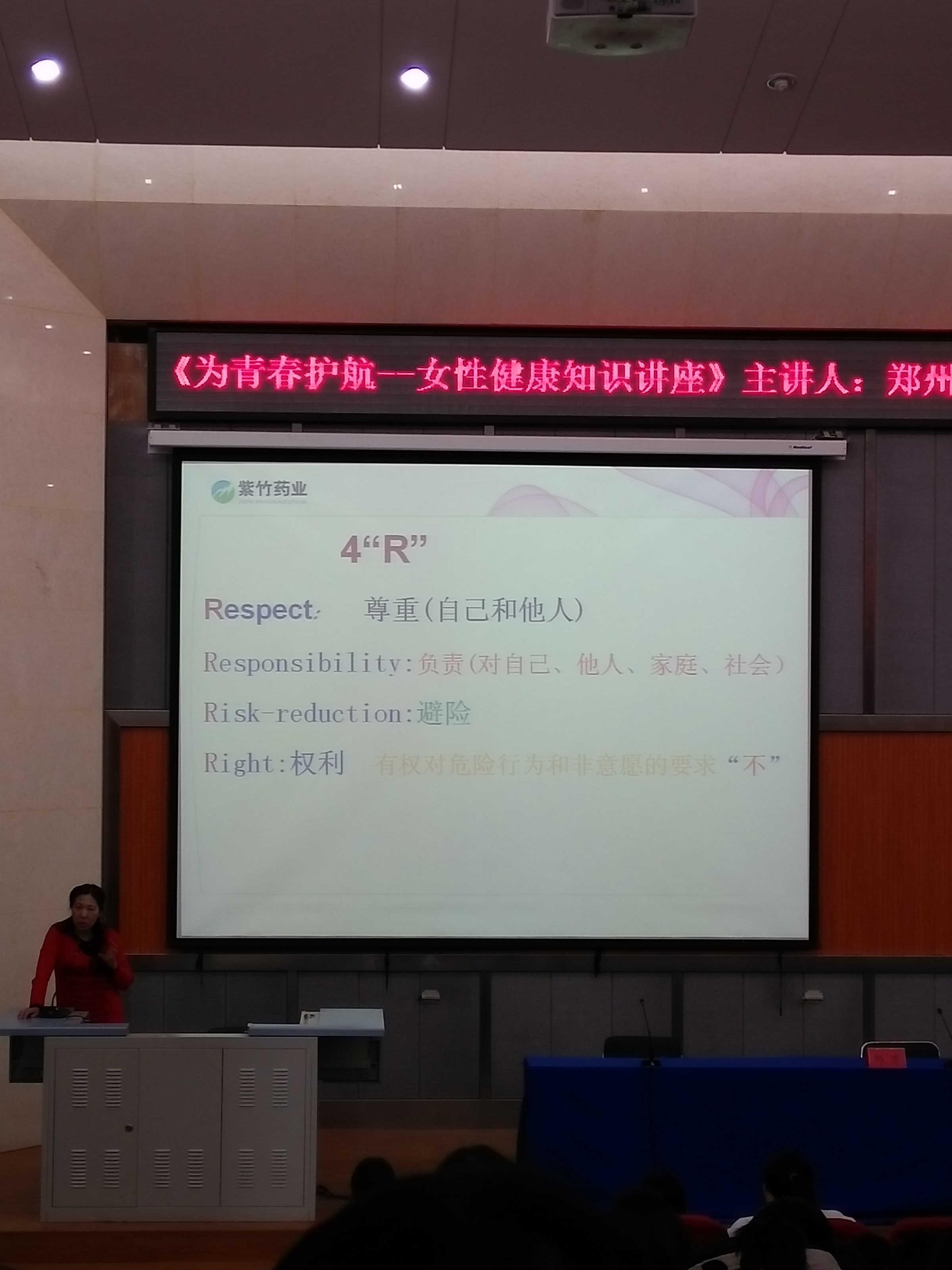 报告厅内座无虚席,现场气氛融洽。邹主任细心为师生们解读了生命的诞生以及生命的整个历程,邹主任用坚实的理论基础和自身丰富的临床经验,教会女性朋友们“如何去关爱、保护自己”,并总结“4R”来提醒女同学们“为青春护航,对生命负责”。最后,同学们以热烈的掌声向邹主任表示感谢。