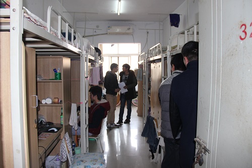 各学院辅导员老师深入宿舍,分别从管理制度、安全措施、安全隐患和卫生整体建设四个方面进行检查,在检查过程中提醒同学们要时刻注意宿舍安全和卫生问题,明确要求严禁在宿舍内使用违章电器,不在宿舍内吸烟等,增强安全防范意识,加强自律与他律,从身边点滴小事做起,自觉遵守宿舍各项规章制度。从宿舍检查中能够反映出,学生宿舍环境较好,但个别宿舍还存在使用违章电器现象,未能做到安全用电,学生防盗意识薄弱等问题。