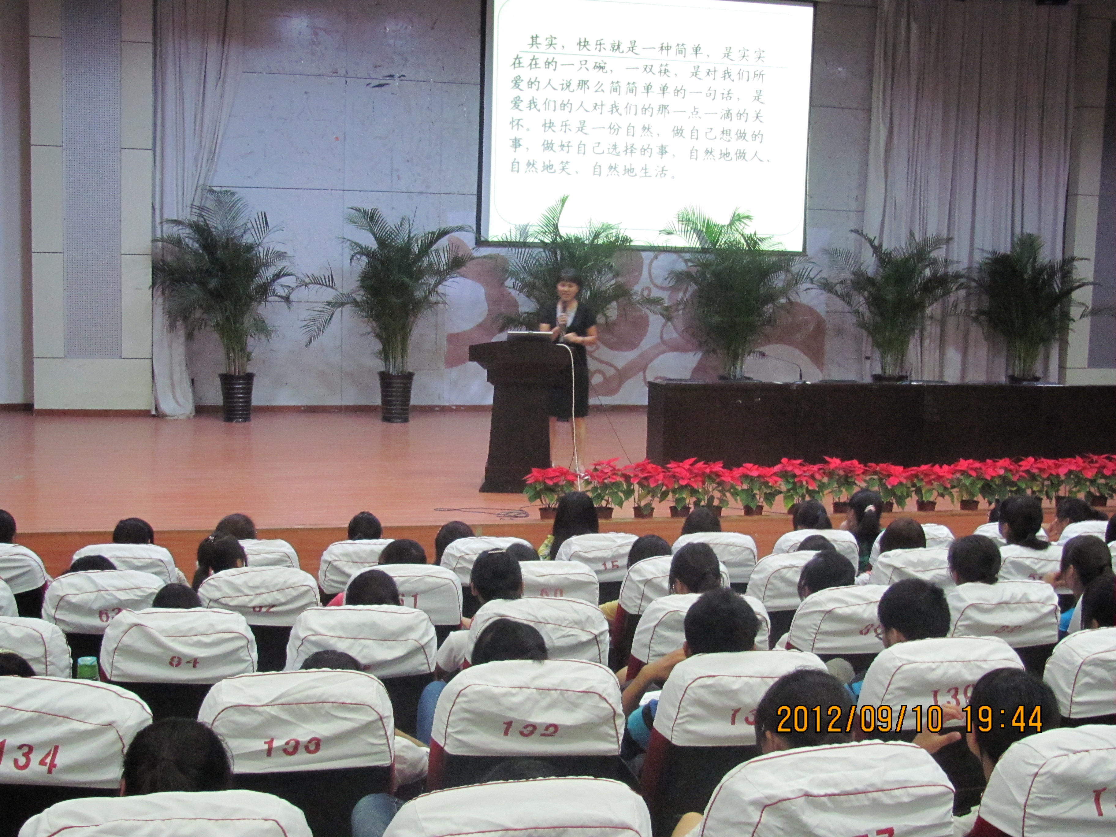 本报讯 新学期伊始,为使新生更好的融入大学生活,健康快乐成长。9月10日晚6点半,由学生处主办、大学生健康教育协会协办的“用心开启你的大学之旅”专题讲座在我校7号学术报告厅举行,讲座由李宛青教授主讲,我校600多名学生聆听了此次讲座。