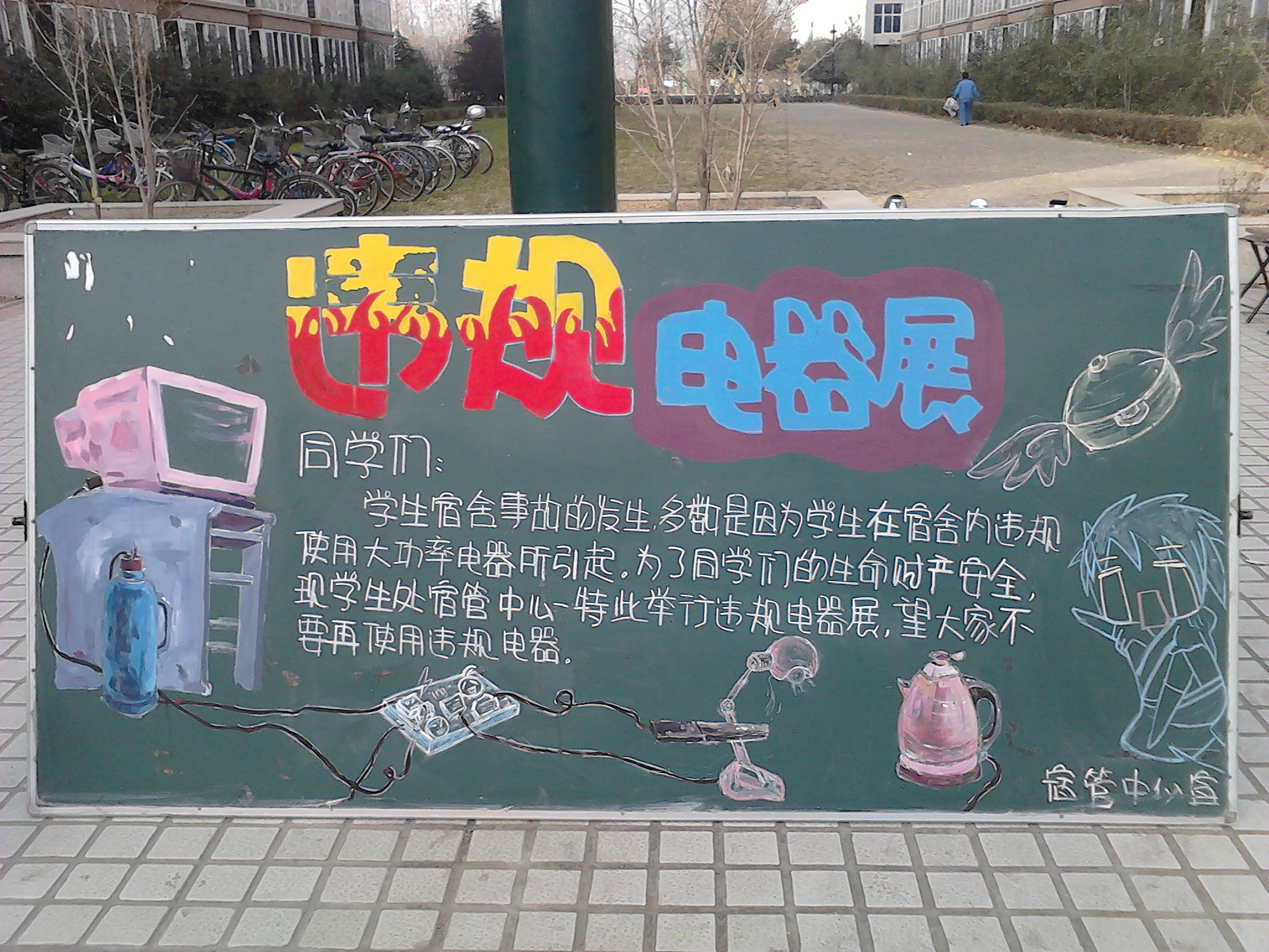 除此之外,放置于展台周围,由宿管中心精心制作的安全教育板报更是吸引了师生的注意力。板报内容多是关于各高校师生宿舍违章用电引发的特大火灾事故,并配有大量的现场图片。一桩桩悲剧触目惊心,让大家明白不能抱着侥幸心理,这样的惨剧就发生在我们身边。