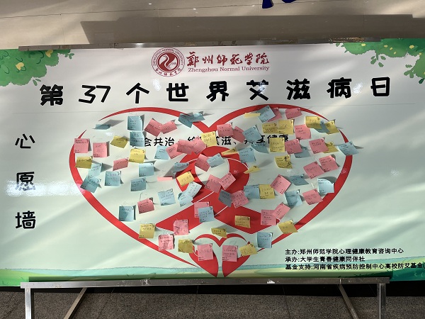 活动现场布置得温馨而富有创意,吸引了众多同学前来参与。在醒目的宣传展板前,同学们驻足观看,认真阅读艾滋病防治的相关知识,了解艾滋病的传播途径及预防措施。此次活动的一大亮点是心愿贴环节,同学们纷纷拿起笔在心愿贴上写下自己对艾滋病防治工作的美好期许以及对健康生活的坚定承诺。“愿防艾知识深入人心,让青春远离艾滋困扰”“希望大家都能以科学态度对待艾滋病,消除恐惧与歧视”…… 一张张写满真挚心愿的便签纸,逐渐汇聚成一面充满希望与力量的 “防艾心愿墙”,不仅展现出同学们积极参与防艾行动的热忱,更象征着他们为构建无艾校园贡献力量的决心。除了心愿贴环节,青春健康同伴社还精心准备了手帕纸、防艾书签、防艾便签等实用小礼品,在无形中传递了防艾知识,让健康理念深入人心。