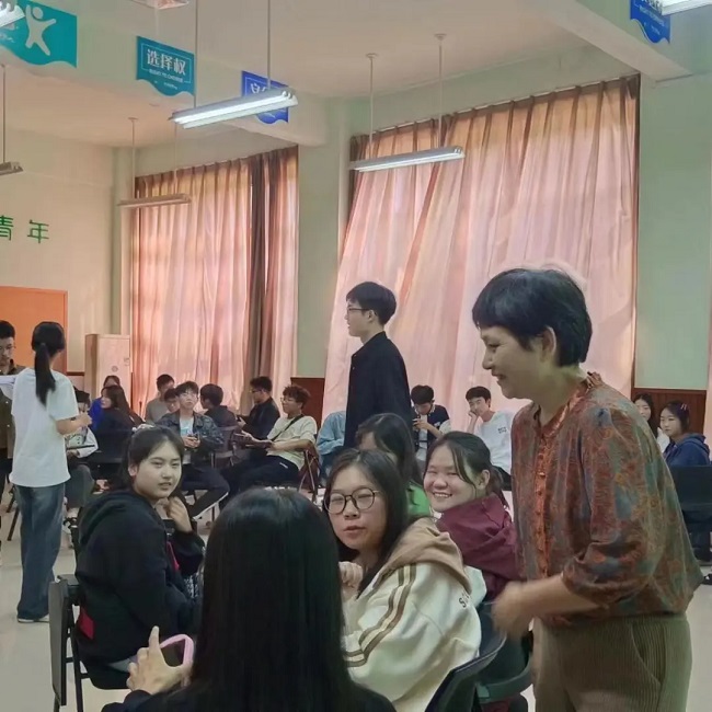 在强调了团体心理辅导的保密、尊重、积极参与等原则后,李老师把全体人员随机分为四组,每组抽取一个爱情开始的情景故事,让每个小组根据自己抽到的情景重新设计情节,一起来改变主角的命运并进行情景扮演。每个小组的同学们积极针对各组情景进行了热烈的讨论和精彩的角色扮演,在表演结束之后,李老师引导大家深入讨论以下问题并分享讨论结果: 原来的情境中双方做了什么才导致这样的结果? 新的情景你们做了什么改变?为什么这样修改? 大家觉得这样的方式合适吗? 作为主角,你遇到这种情况是怎么想的?大家认为还有什么好的表白/追求方式? 接着,请大家讨论并总结出一些普适性的开启恋爱之旅的小技巧,如尊重、主动 、生活背景相似、不强迫对方、学会爱自己等。李老师对每个小组的表演和同学们的发言予以肯定,带领大家总结出如何让你喜欢的人爱上你的一些技巧:如第一印象很重要、真诚是金、良好的性格和双方需要满足互补等等。