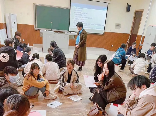 首先李老师以自己身边近期发生的事例为切入点,引导大家识别情绪特别是负面情绪,学会共情并引入今天的活动主题——“与情绪对话”。接着李老师将同学们分为四组,引导同学们在纸上画出经常出现的负面情绪,给情绪命名,再依次写上情绪出现的时机,所采取的行动,做了之后会发生的变化,可以怎样更好地对待这种消极情绪,怎样与它更好地相处等。然后同学们按照保密、尊重、积极发言的原则在组内踊跃分享自己的亲身经历,讲述自己当时的情绪与采取的行动。李老师也在同学们分享自己的故事时细心倾听,与之讨论并及时指导。随后李老师邀请每组代表上台分享自己的情绪,面对情绪的解决办法以及经过小组分享后的感悟等,大家一般通过宣泄、倾诉、转移注意力来缓解负面情绪对自己造成的影响。李老师对同学们的发言给予了充分肯定,带领同学们总结出“听他人故事,悟自己人生”的道理。
