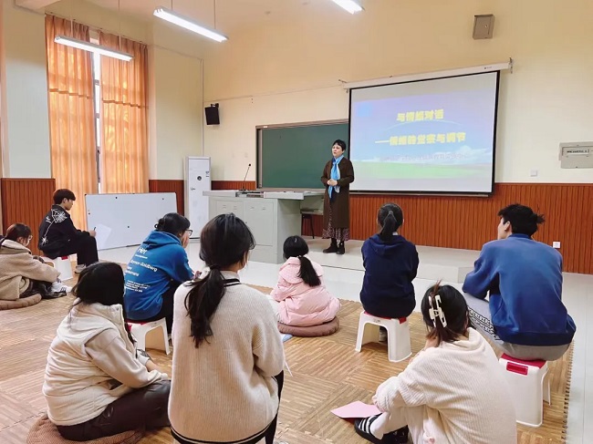 为加强我校大学生对心理健康重要性的认识,提高大学生心理健康水平,增强大学生对自我情绪的觉察和调节能力。2023年11月21日下午3点,由心理健康教育咨询中心主办的"与情绪对话"团体心理辅导在文博楼C116室开展。来自全校各学院的近40名心理委员参加,李宛青老师带领。