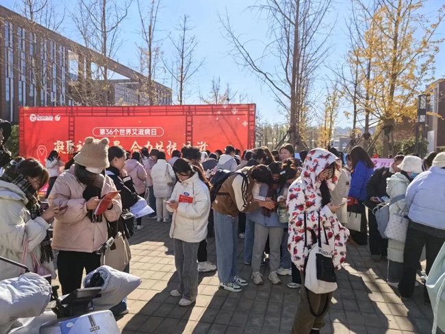 为动员社会各方力量凝心聚力,目标一致共同抗击艾滋病,维护人民群众身体健康和生命安全,由郑州师范学院心理健康教育咨询中心主办,惠济区卫健委、计生协协办,中国性病艾滋病防治协会高校防艾基金项目、中国计生协青春健康高校项目、河南省疾控中心基金支持,大学生青春健康同伴社承办的主题为“凝聚社会力量,合力共抗艾滋””的第36个“世界艾滋病日”宣传活动于2023年12月1日上午在东校区文博楼前广场隆重举行,5000余名学生参与。