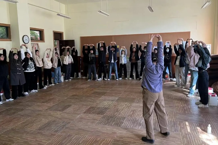 活动进行中一一其一,在明媚的春天里,从春意盎然中萌发向上的情感。寻找榜样的力量,观看长沙橘子洲毛主席青年雕塑画面,共同诵读《沁园春长沙》诗词。“恰同学少年,风华正茂,书生意气,挥斥方遒。…曾记否,到中流击水,浪遏飞舟。”从伟人的豪情壮志中,激发朝气蓬勃的动力。其二,在朱自清散文《春》的片段朗读中,觅诗情画意,涌动的春天带给我们成长的希望。其三,观看“上春山”双人舞投影视频,在音乐与舞蹈的欣赏中,感触欢快的旋律与进阶的春意。其四,习练八段锦第一式“双手托天理三焦”,运用呼吸与动作的联结,体验擎天柱地的能量。其五,分小组讨论。最后五位组长做总结发言,交流并分享彼此感受。