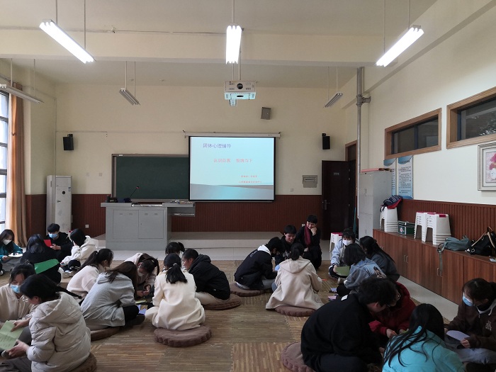 2022年3月18日下午2点30分, “认识自我,悦纳当下”团体心理辅导在文博楼C116团体辅导室开展,外国语学院B21俄语班全体同学参与,心理健康教育咨询中心李宛青老师带领。