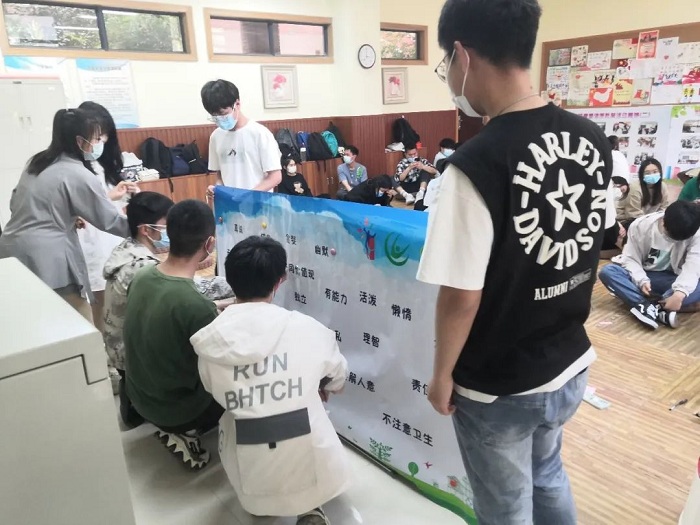 此次活动主要是看大家选择朋友的标准。首先,主持人把一些描述人的特点的词汇展示在大家面前,请大家从中选择5个“最看重”的特点和一个“最不能容忍”的特点写在纸上。接着,请大家在已选择的“最看重”的5个特点里去掉2个,讨论为什么去掉这些?留下这3个的理由是什么?再去掉2个,为什么?留下这1个的理由是什么?随后请大家一一上台,针对白板上的选项,对应自己“最看重的”和“最不能容忍”的选项下男生贴上蓝色纸条,女生贴上黄色纸条,并把最终结果展示给大家,引发大家思考分析多数人最看重和最不能容忍的特点与自己的选择是否一致,男女间是否有差异,“我”的选项为何与众不同?在人际关系上我需要做哪些调整?