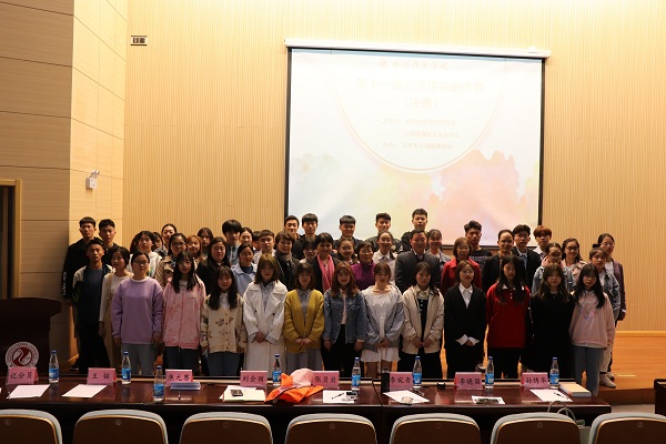 为充分调动我校学生的主观能动性,提高他们的思考创作能力,促进心理健康发展,丰富校园文化生活,由学生处心理健康教育咨询中心主办,大学生心理协会承办的主题为“剧暖心 ,伴你行”第十一届“校园心理情景剧”大赛决赛于2021年4月13日下午三点在嵩山学堂第二报告厅成功举办,学生处负责人郑斌出席,机关党总支书记孙绣华、教育科学学院心理系主任李晓丽、心理健康教育咨询中心主任李宛青、学生处思想政治教育科科长张贝贝、学生处宿舍管理科科长刘会丽、郑州大学应用心理学硕士现我校辅导员焦元骞、大学生心理健康协会会长王铭担任评委,各学院学生代表参加。