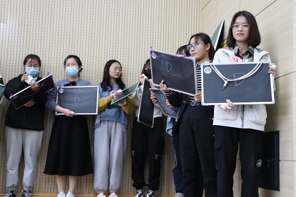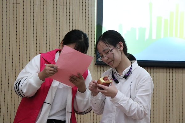 竞赛分为三个环节。第一环节为淘汰赛,主持人读题,32名选手在小黑板上作答,答对者留下,答错者自动离开,直至场上剩下少于或等于15名选手,少的几名由主持人抽号补够15名。第二环节为团体赛,15名选手通过报数“金苹果青春”5个字被随机分为五组,以小组为单位进行第二轮抽题和答题环节,选出排名前三的小组,第一名直接晋级,并列第二名的两个小组的六名同学分别进行才艺展示,由评委打分,取前三名晋级。最后进入第三轮总决赛,每人一个苹果、一把小刀,边削苹果边答题,一心两用,每名选手旁边站一名健康协会成员读题和计分,答对者得一分,答错者扣一分,不答按答错计,苹果皮长短也计入总分,依次加1、2、3、4、5、6分,两项成绩加一起计入总成绩。在比赛进程中,主持人不断挑选台下观众回答问题,观众的积极踊跃把现场气氛推向高潮,并大大提高了活动参与度。最后,物理与电子工程学院郭梦姣同学荣获一等奖,文学院白晴宜、初教教育学院李文举同学荣获二等奖,地理与旅游学院全雨盈、李文净、 信息科学与技术学院王瑞同学荣获三等奖。