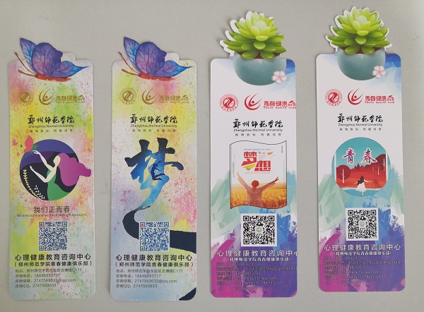活动通过志愿者向新生发放精美心理和青春健康教育书签等形式展开,书签上的心灵寄语“交出你心,说出你情,打开心结,为心灵找到休憩的乐土” 、“为你的心灵打开一扇窗,为我们的沟通搭起一座桥”、“无论将来会遇到谁,生活都是从先遇到自己开始的”、“当你开始爱自己,全世界都会来爱你”。青春寄语“青春拥抱梦想,健康护你周全”、“青春•健康 美丽•绽放”。这些温情的寄语带给刚刚离开家人踏上新的征途的2020级小萌新们以心灵慰藉,书签上心理健康教育咨询中心微信公众号二维码、中心网站网址、咨询电话、咨询信箱、咨询QQ号、青春健康标识、郑州师范学院青春健康俱乐部地址、大学生青春健康同伴社QQ群二维码等信息,让他们在遇到心理和青春健康方面困惑时可以快速找到求助渠道。