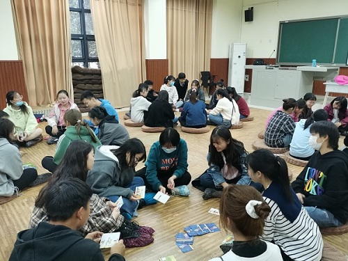在李老师的引导下,大家先共同学习了诸如尊重对方隐私、没有正确答案、尊重个体差异等活动原则,接着同学们被分为四组,每组一套珍爱卡,每个同学都有机会抽取、解读卡片,并分享自己的感受,其他同学认真倾听他人的故事,不做评判。在大家真诚的交流中感受每个个体在解读同一卡片时的不用角度和含义,也深深明了由于每个人成长环境、心路历程的不同,导致对同样事物的理解不同,参与的同学在今后的人生中对他人不同观点可能会多一些理解与接纳,在自己遭遇人生困惑时,也会从多角度思考。活动结束,许多小组自动组建了小群,来自不同学院的心理委员在今后遇到自己或同学们的心理困惑时,也多了一个咨询渠道。活动前李老师还带领大家参观了心理中心的各个功能室,让这些心理委员们了解自己的学校有这样一个温馨的角落,可以推荐给本班同学前来释放压力舒缓内心焦虑和负面情绪。