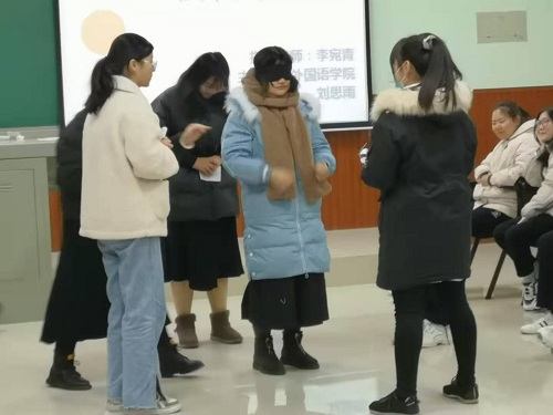 主持人先邀请五名志愿者出列,将写有“性病”“禁欲”“忠诚”“使用安全套”“与多性伴发生无保护性行为”的信封随机发给志愿者,并让拿到“性病”的同学展示给大家看,然后将这位学生的眼睛蒙上,让她站在另外四人围成的圆圈里,接下来主持人让这位同学转圈,停下来时指向其中一个人,被选中者需要念出信封里卡片上的内容,并指出该行为是否容易感染性病并解释理由,主持人肯定正确的,补充不足的,更正不正确的。第一次的被选中者回到座位上,接着重复这个步骤,直至完成这个活动,最后请参与者回到自己的位置,随后主持人讲解性病的传播途径以及预防的方法,同学们针对性病的预防积极发言,回答最多的是洁身自好,接着主持人问“性传播疾病有哪些危害?”主持人根据学生们的回答给予补充,性传播疾病对个人的生理和心理都有一定的影响,并且会对社会的发展以及稳定造成严重的威胁。同学们认真聆听,收获颇丰。