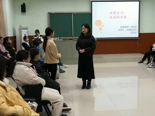 为使我校学生了解性病的概念、传播途径及预防措施,郑州师范学院大学生青春健康同伴社于2020年12月8日晚6点在文博楼C117举办了“旋转木马:性病的传播”青春健康同伴教育沙龙活动,外国语学院刘思雨同学担任主持人,来自各学院的49名同伴社社员积极参加了此次活动。