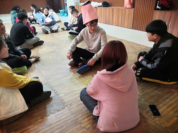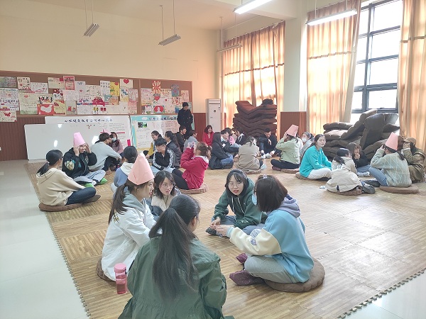 整个过程分为三个活动。活动一,全体参与者通过报数“心理健康教育”被分为6组,分别围圆圈坐下。李老师通过对自己名字赋予积极意义示例了如何用积极意义的词语介绍自己的名字,每个同学尝试改变以往的介绍模式,重新思考自己名字中每个字可能包含的积极意义,一些过去一直不太喜欢家长给自己起的名字的同学,通过积极赋义,发现原来自己的名字还可以暗含这么美好的寓意,这种自我暗示的方法,让大家感受到心理学的神奇。活动二,“戴高帽子---优点大轰炸”,每组请一位成员坐在团体中央,戴上纸折的高帽子,其他人轮流说出他(她)的优点及对他(她)的欣赏之处(性格、相貌、处事、气质),态度要真诚,努力发现他人长处,不能毫无根据地吹捧。参与者要用心体验被人称赞时的感受,怎样做一个乐于欣赏他人的人,并说明哪些优点是自己以前觉察到的,哪些是以前不知道的。每个成员要轮流到中间戴一次高帽子,并被他人夸赞。活动三,自我肯定练习。通过朗读人际关系方面自我肯定的文章,想象自己在日常生活中的一些人际交往场境,自我暗示如何主动接受他人,人缘越来越好,越来越受大家欢迎。在融洽、和睦、温暖的人际环境中,感受到人生的充实和幸福。活动四,空椅子,在空旷处放两把椅子,参与者分享自己在人际关系中不愉快的经历,一人同时扮演两个角色。其他人就扮演者所扮演的角色提出具体改进意见。