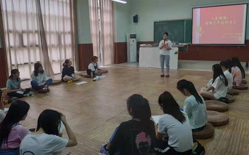 交流会以一场青春健康同伴教育沙龙“人生畅想:写给十年后的自己”开场,主持人刘思雨同学给每位同学五分钟时间让大家写一封信给十年后的自己,通过讨论以及分享自己的信,同学们对自己的未来进行了勾勒,提到自己将来的家庭和从事的事业以及平时的休闲娱乐等,同学们对未来充满了希望和期待。只有把握当下的青春年华,保持积极健康的心态,才能实现未来的畅想。