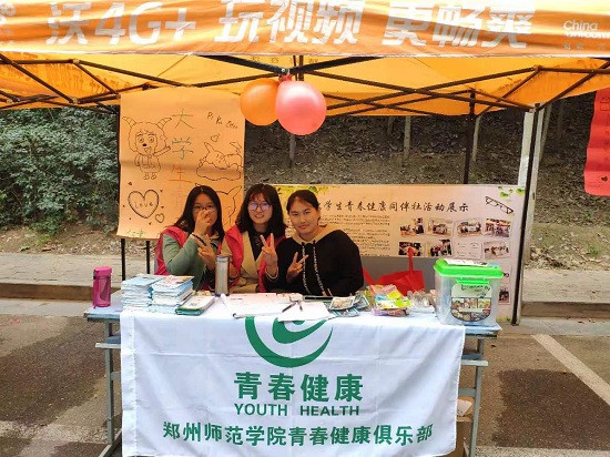 社团一年一度的招新活动是关乎社团兴衰的重要活动,是社团可持续发展和不断壮大的“源泉”,为此,大学生青春健康同伴社2019年招新活动于2019年10月16-18日于郑州师范学院东校区荟萃山脚下火热开展。