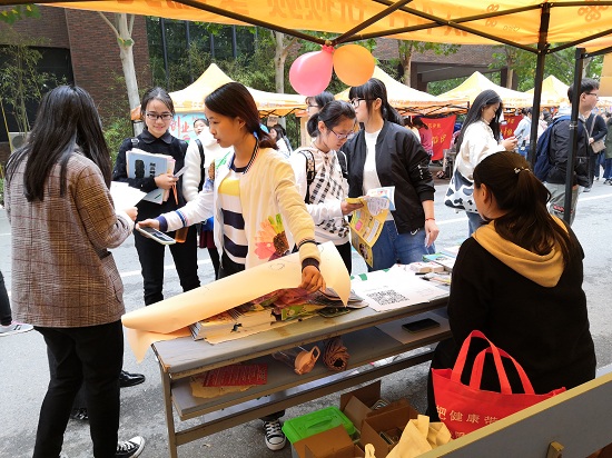 此次招新工作一开始就吸引了不少学子的好奇心,许多同学前来咨询。社团负责人和指导老师为详细大家介绍社团文化及各项活动,诸如:一年一度的金苹果青春健康知识竞赛,世界艾滋病日宣传,形式多样有关迎接青春期、人际交往、性行为与决定、预防意外怀孕、预防艾滋病感染、计划未来等的青春健康同伴教育沙龙等。还为同学们准备了介绍社团的宣传册和精美的书签,并让大家扫社团qq群二维码进群,以便同学们更好地了解社团活动信息并方便开展各项活动。活动期间,还为每位前来咨询的同学送上一本艾滋病宣传手册,让19级新同学入校之初就对艾滋病知识有一个比较详细的了解,以便自觉远离艾滋,尊重理解艾滋病感染者。社团还为前来了解社团的同学和准备加入本社团的同学赠送了一些实用的小礼品,不仅增加了同学们对社团的了解,还让大家收获了意外惊喜。