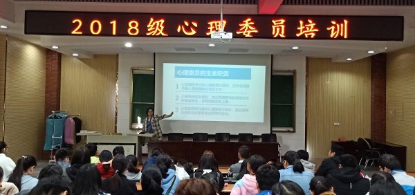 本次讲座是我校2018级心理委员系列培训活动之一,旨在进一步增强心理委员的责任意识,提高心理委员对心理问题的鉴别能力,指导新生班级心理委员积极开展工作,普及心理健康知识。