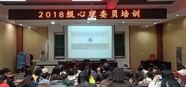 本次讲座是我校2018级心理委员第二次集中培训。我校一直非常重视心理健康服务网络的建设工作,心理委员是心理健康服务网络的基层力量。开展和加强班级心理委员队伍的培训,对学校的心理健康教育工作、心理危机预防与干预将起到十分重要的作用。