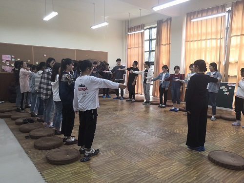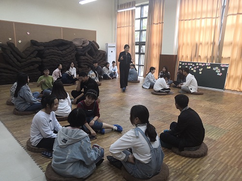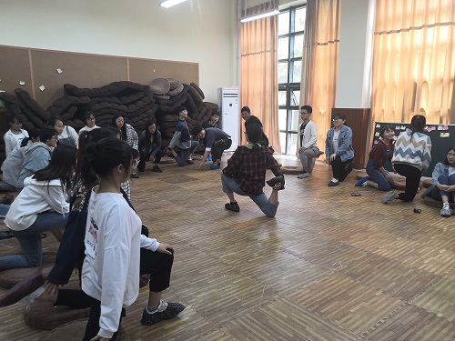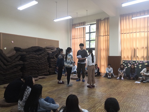 活动从自我介绍开始,由高老师带领,每位同学在做自我介绍的同时做出自己喜欢的动作,全体同学对此进行模仿,在有趣的模仿中更多地认识周围的同伴。第二个活动是“我是演员”心理情景剧,全体同学被分为5组,分别在自己的组内进行心理情景剧的讨论与编剧,之后每个小组上台进行表演。最终第5小组编排的“失恋成长记”获得了一致好评。