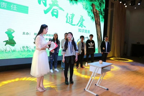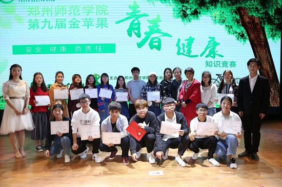 为使我校学生能够在轻松愉快的氛围中学到健康知识,提升健康素养,2018年4月17日下午6:30,由学生处心理健康教育咨询中心联合惠济区计生协主办、大学生青春健康同伴社承办的第九届金苹果青春健康知识竞赛在七号楼报告厅成功举办。由心理健康教育中心李宛青教授,惠济区计生协李杰主任,河南省青春健康师资亢艺琳同学,我校青春健康主持人孙志鹏、邓莹同学担任评委,18个学院各选派两名选手参赛。