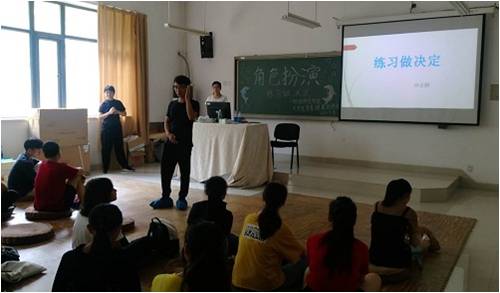 2018年5月15日下午1:30至2:30,由心理健康教育咨询中心主办、大学生青春健康同伴社承办的“角色扮演:练习做决定”青春健康同伴教育沙龙在东校区文质楼A207室成功举行。外国语学院孙志鹏同学、心理健康教育咨询中心李宛青老师担任主持人,各学院学生代表及青春健康同伴社部分成员参与。