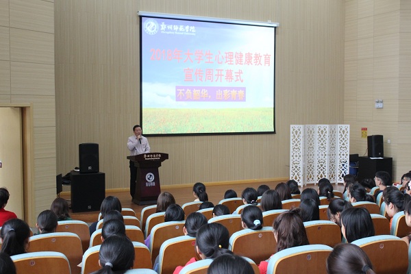 学生处处长郑斌为开幕式致辞,他对大学生心理健康教育工作的重要性和意义做了重要阐述,对各位新同学提出了殷切期望。历史文化学院带来的青春健康舞台剧——《意料之外》,生动地展示了大学生意外怀孕后可能遭遇的种种心理生理伤害,提醒大一新生要“青春不任性 为爱不冒险”,节目受到大家的热烈欢迎。李宛青教授作了“适应大学生活,向幸福出发”专题讲座,以新生入学后较易出现的适应问题为主,结合案例讲解了系列适应及调整措施。最后,李教授带领部分同学参观了心理健康教育咨询中心,让新入大学的18级宿舍心理信息员切实感受了心理中心的场地和设施,了解了中心的服务内容及流程,为今后服务同学提供便利。