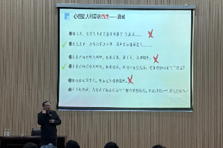在沟通价值板块,他明确了辅导员在学生心理健康工作中的核心职责,针对当下大学生面临的学业压力、人际困扰、情感困惑等突出心理问题,系统阐释了有效沟通在风险预判、情绪疏导、成长陪伴中的关键作用。