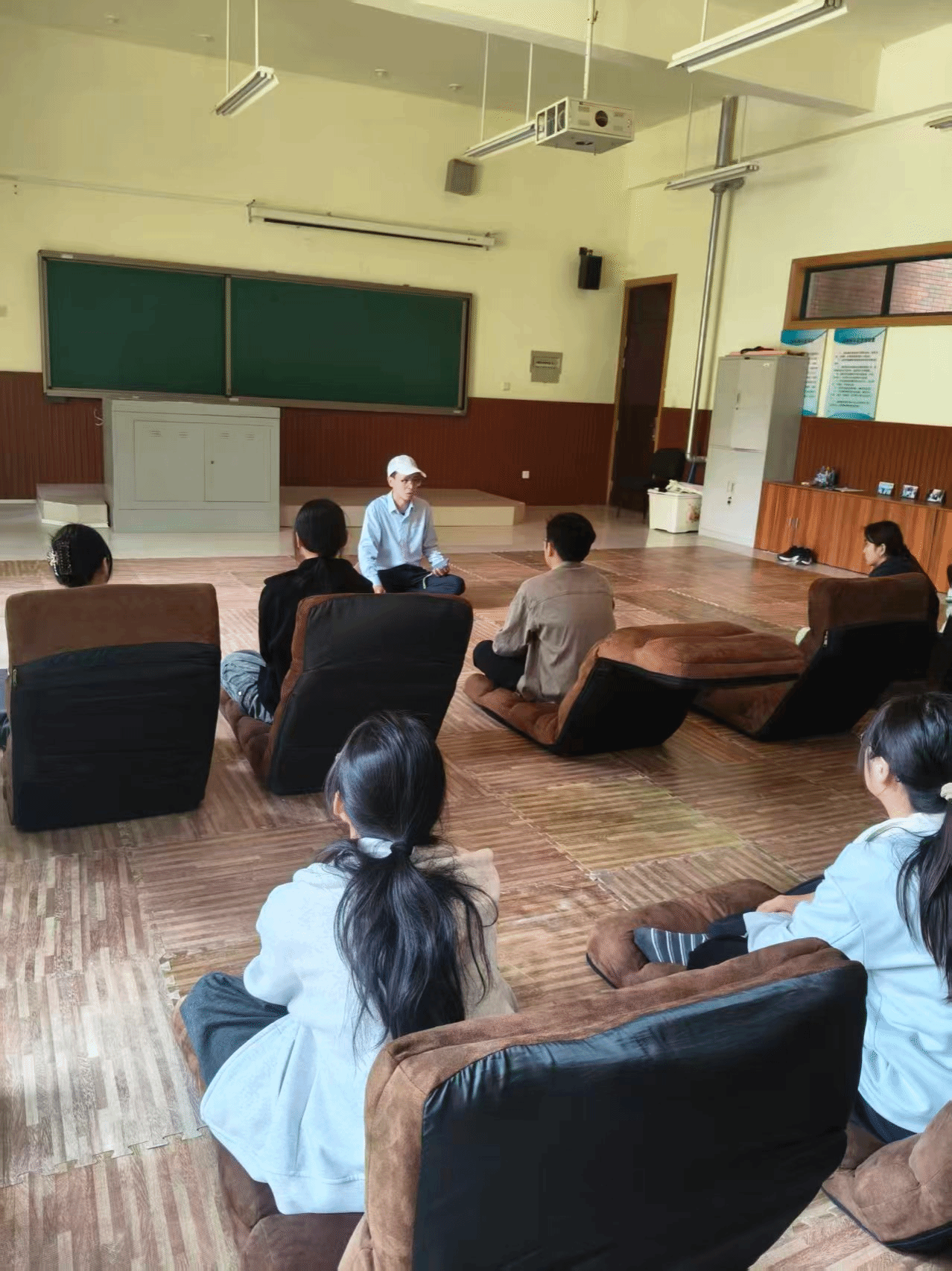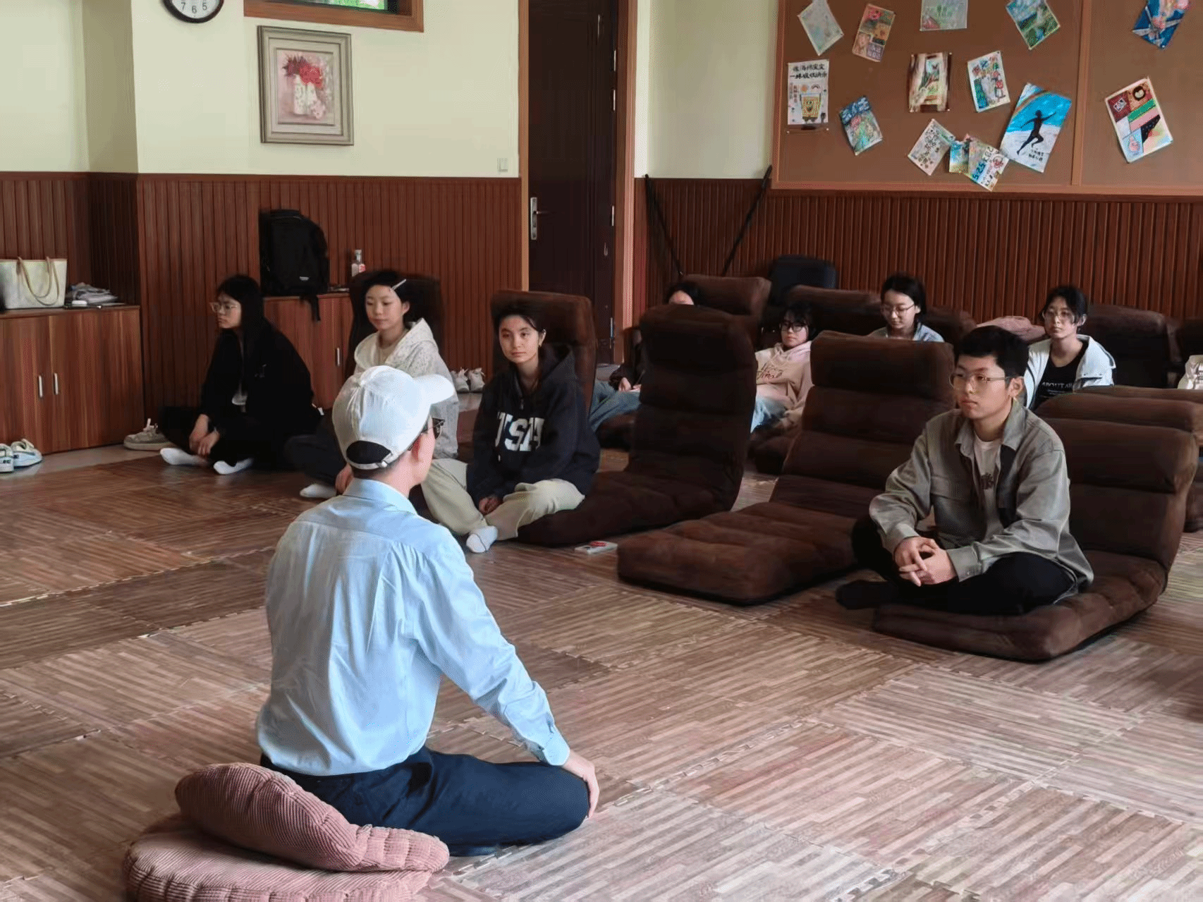 整个练习过程中,焦老师不断轻声提醒,即便跟不上节奏也无需自责、不必强求,接纳自己的所有状态,就是正念练习的重要一步,让同学们放下心理负担,全身心投入其中。